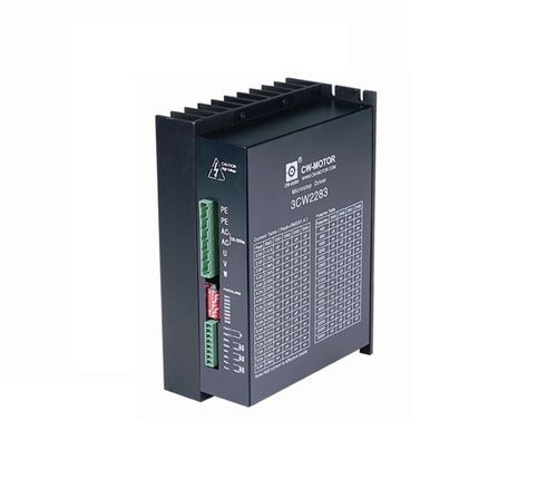 3CW2283 is subdivided and high-performance stepper motor drive using constant angle and constant torque,which is designed for 130BYG、110BYG and other 8A following three-phase hybrid stepping motor. The driver uses the circuit which is Similar to the principle of servo control with the features of smooth running, low noise, low vibration, low temperature rise of the motor .It has 16 kinds of micro-step, and the micro-step can be set from full step to 51200steps/rev.The working current can be set from 2.0A to 8.3A, and the output current has 16 stalls, the current resolution is about 2.0A; with automatic semi-flow, self-test, overvoltage, under-voltage and over-current protection. This driver is AC power,Voltage does not exceed 240VAC not less than 120VAC.